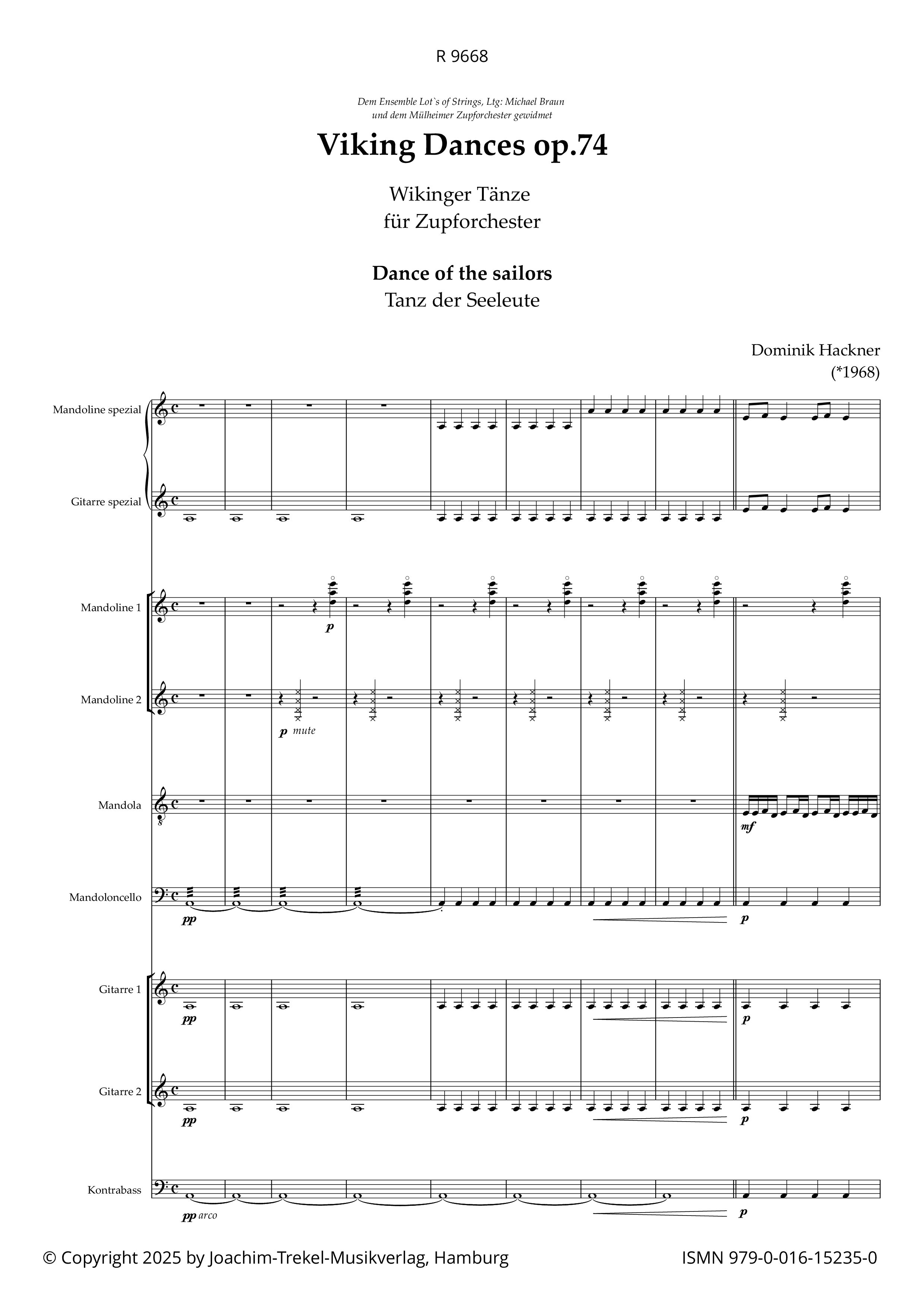 ausgewachsenen Zupfensemble musizieren können. Daher wurde die Partitur um jeweils eine "Beginner"-Stimme Mandoline und Gitarre ergänzt. Die Aufführung des Werkes ist aber
